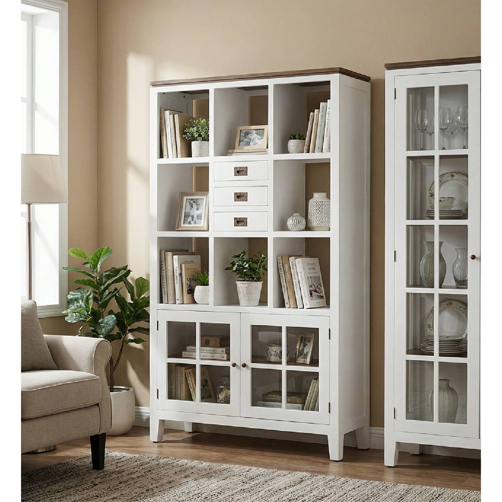 BIBLIOTHÈQUE EVEREST 3 TIROIRS 2 PORTES 8 ESPACES