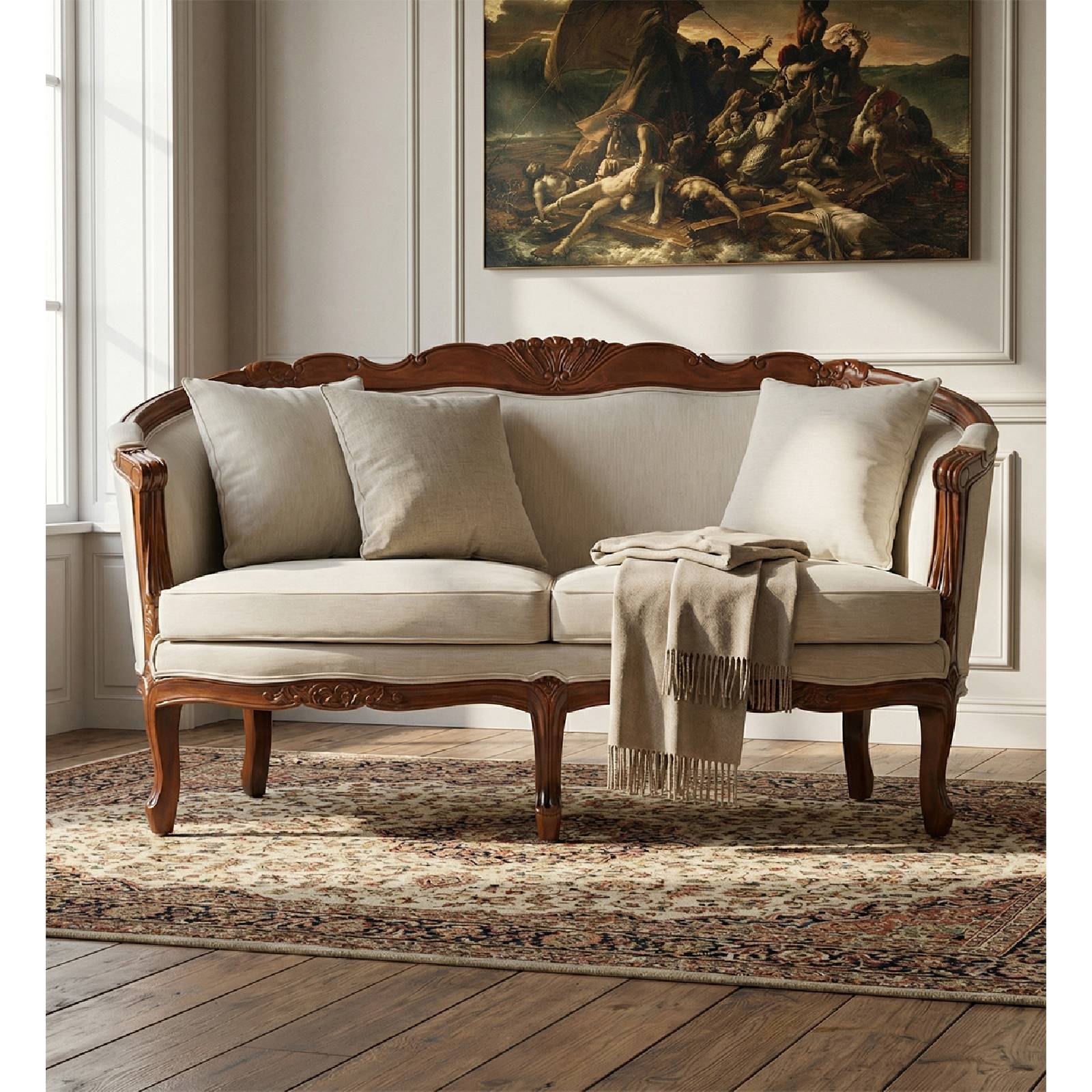 CANAPÉ VINTAGE LOUIS HONEY 2 PLACES AVEC COUSSIN