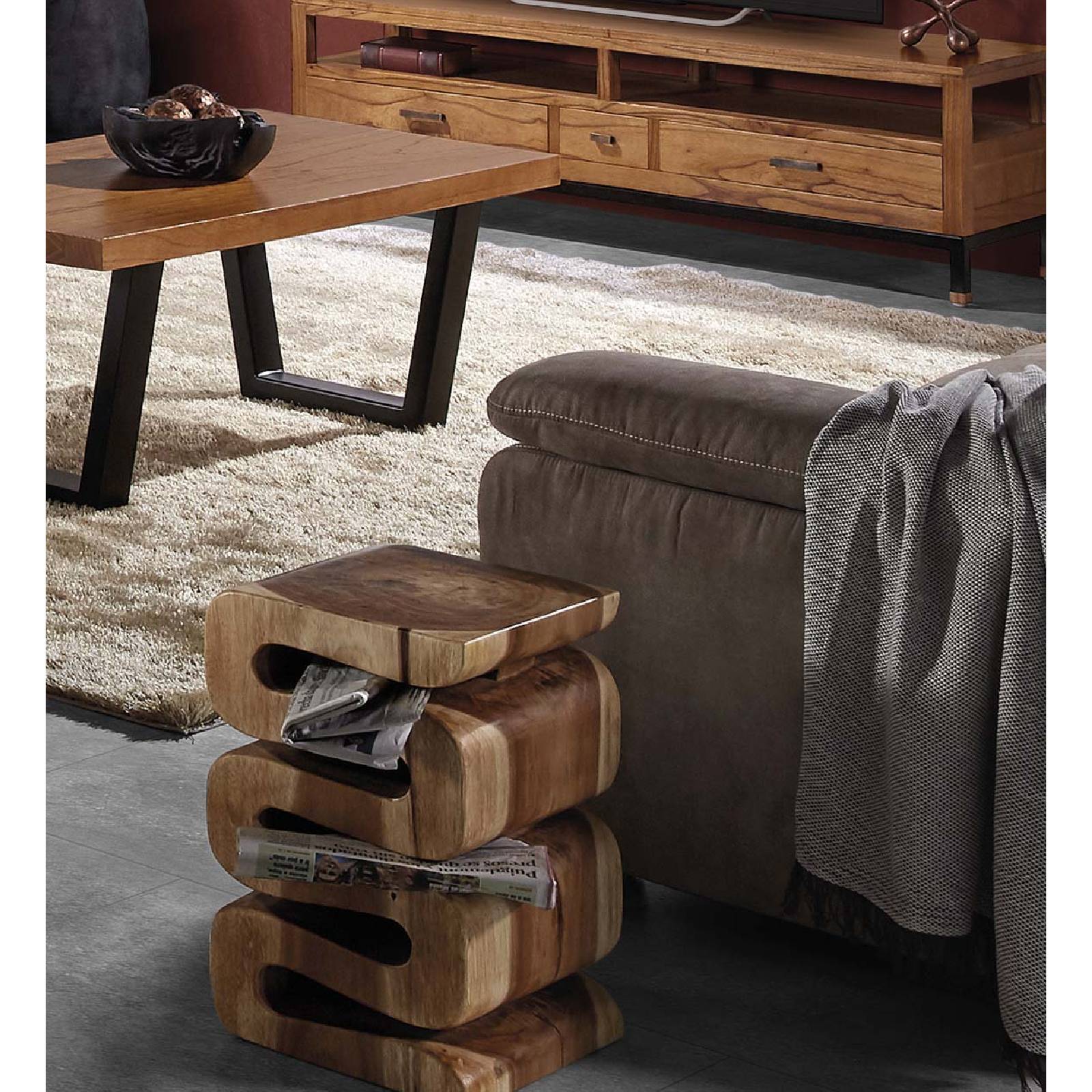 TABLE D’APPOINT CARRÉE EN BÛCHE DE SPIRALE