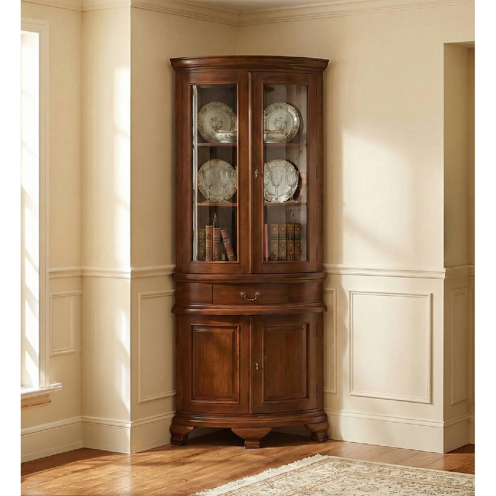 VITRINE D’ANGLE VINTAGE 4 PORTES 1 TIROIR