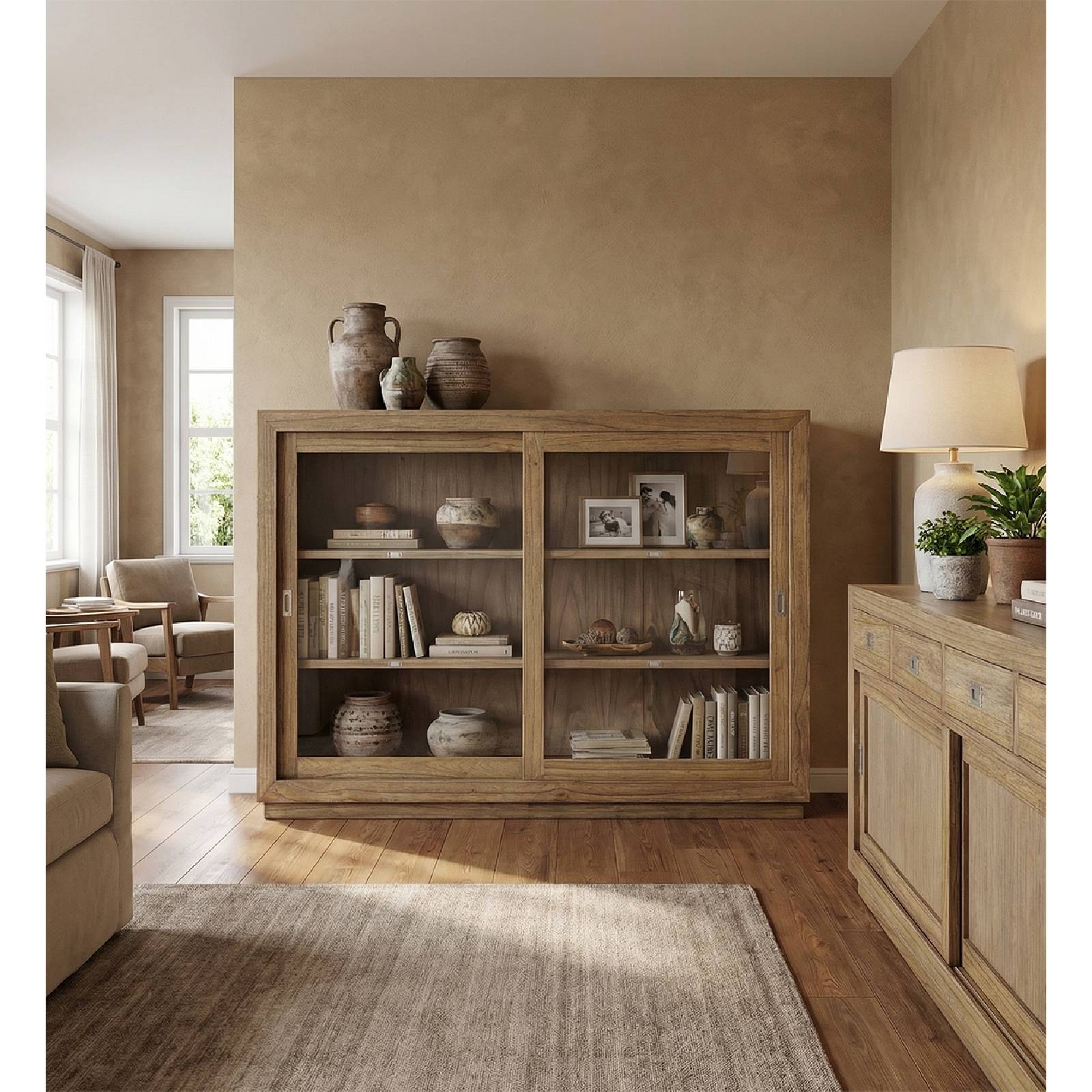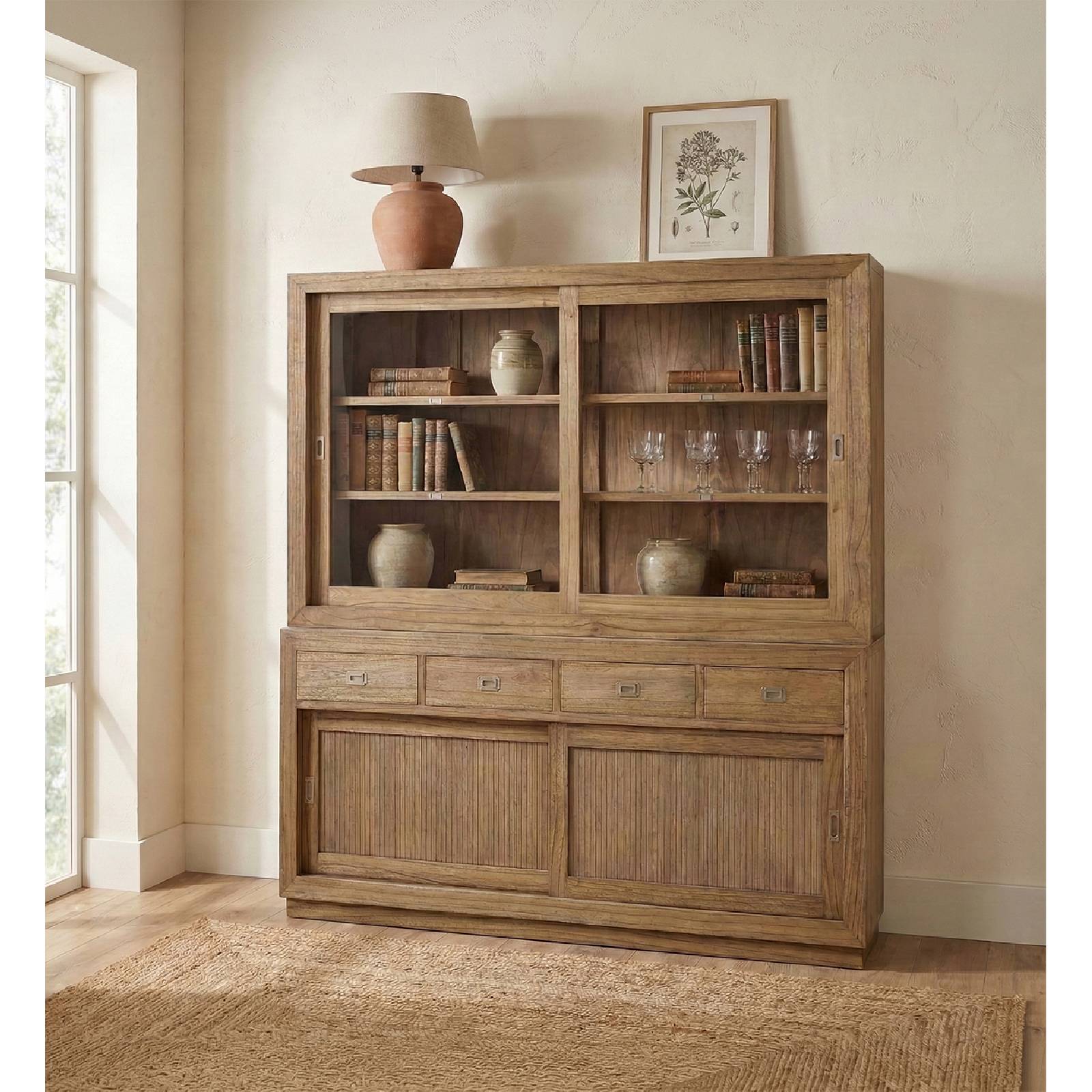 VITRINE MERAPI 2 PORTES COULISSANTES 2 ÉTAGÈRES