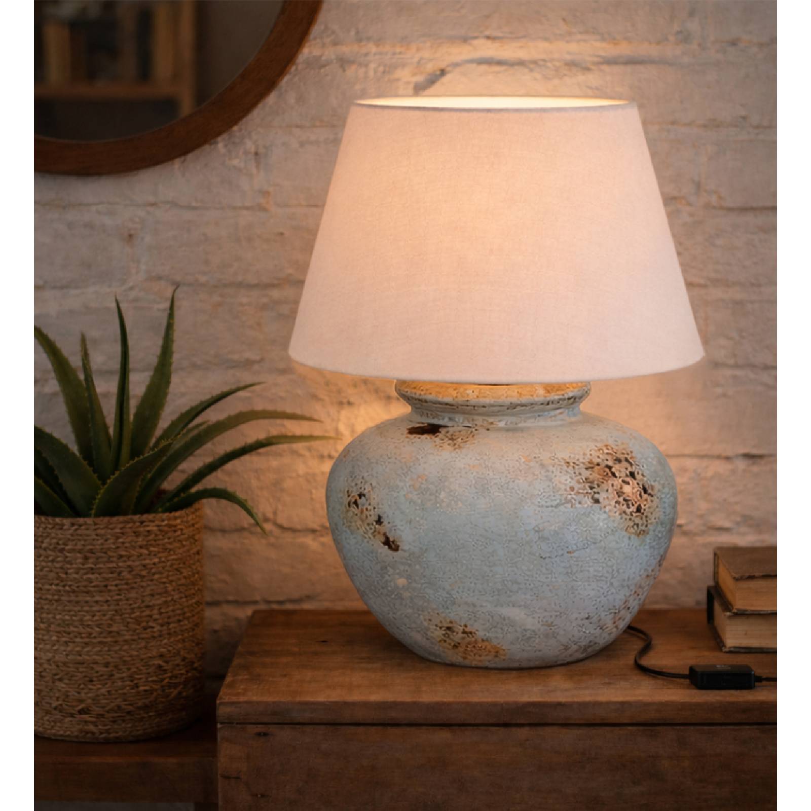 LAMPE ALBA BLEUE AVEC ABAT-JOUR BLANC