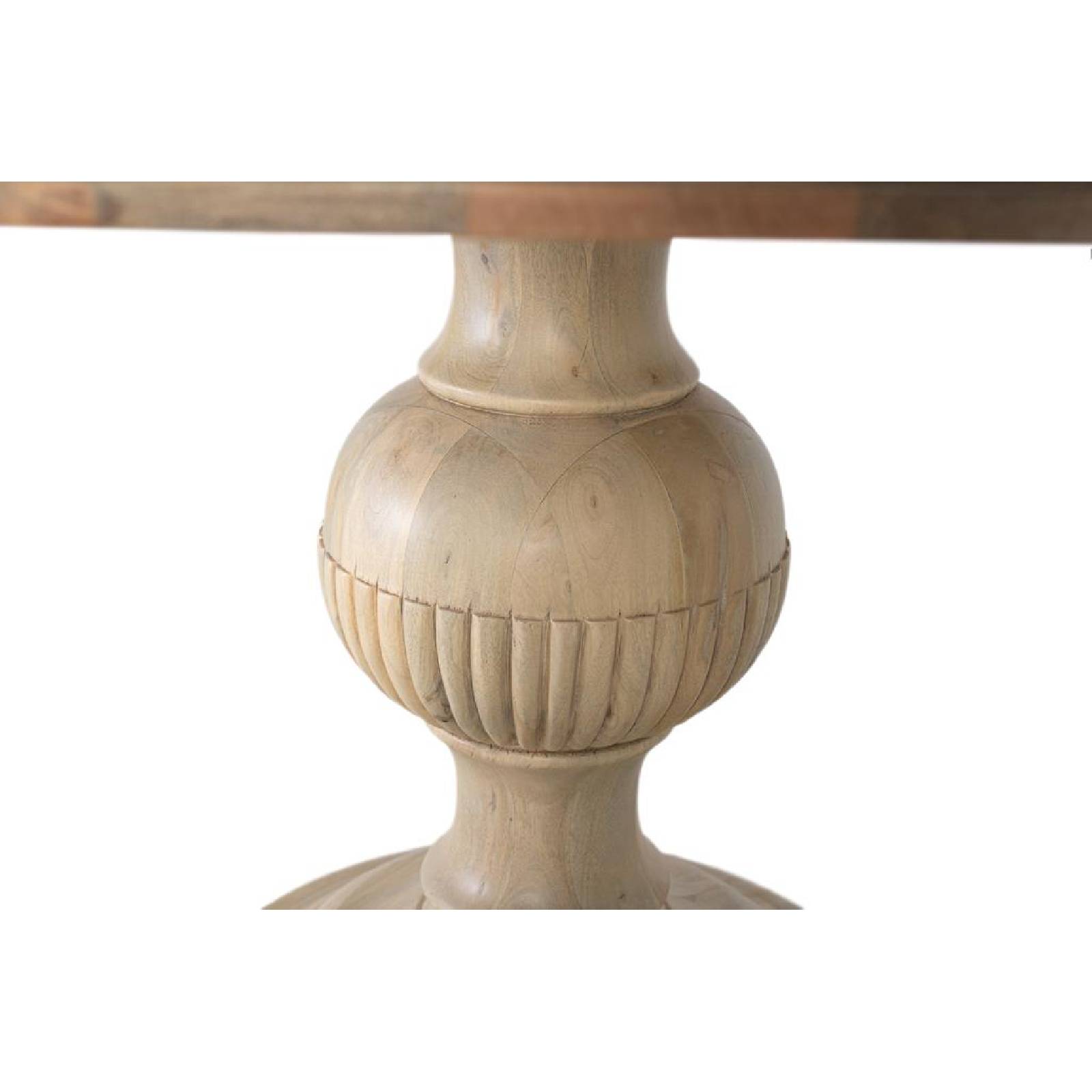 Cette table de salle à manger ronde est fabriquée en bois de manguier massif, un matériau durable et résistant, réputé pour sa beauté naturelle et son grain unique. Son design se caractérise par un plateau circulaire à la finition naturelle et une structure centrale composée d'un pied tourné remarquable, orné de détails sculptés qui lui confèrent une allure classique et élégante. Grâce à son piètement solide et stable, cette table offre robustesse et équilibre, ce qui la rend idéale pour les salles à manger ou les cuisines en quête d'une touche intemporelle et naturelle.