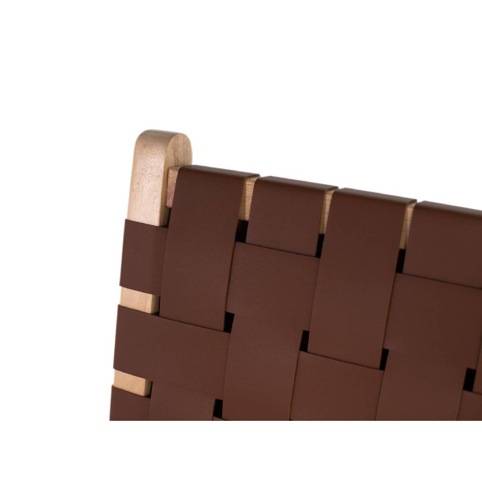 Ensemble de deux chaises en bois d'hévéa à la finition naturelle, caractérisées par une structure robuste et des lignes épurées. L'assise et le dossier sont revêtus de cuir tressé, garantissant durabilité, confort et un aspect artisanal. L'assise et le dossier sont composés de larges lamelles de polyuréthane entrelacées, alliant résistance, confort et style contemporain. Ces chaises sont idéales pour une table à manger ou pour apporter une touche de modernité à n'importe quelle pièce.