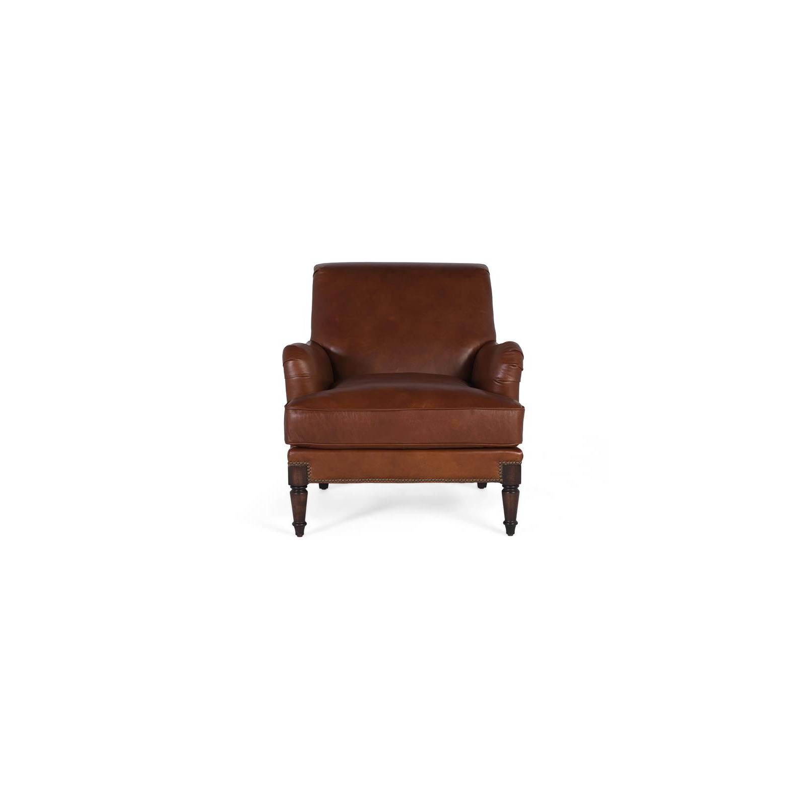 Ce fauteuil élégant allie charme classique et confort. Revêtu de cuir marron de haute qualité, il offre une surface douce et résistante à la finition chaleureuse. Son dossier légèrement incliné et ses accoudoirs arrondis offrent confort et raffinement. Les pieds Chippendale couleur noyer ajoutent une touche artisanale raffinée qui sublime son design intemporel. Idéal pour les salons, les bureaux ou les coins lecture.