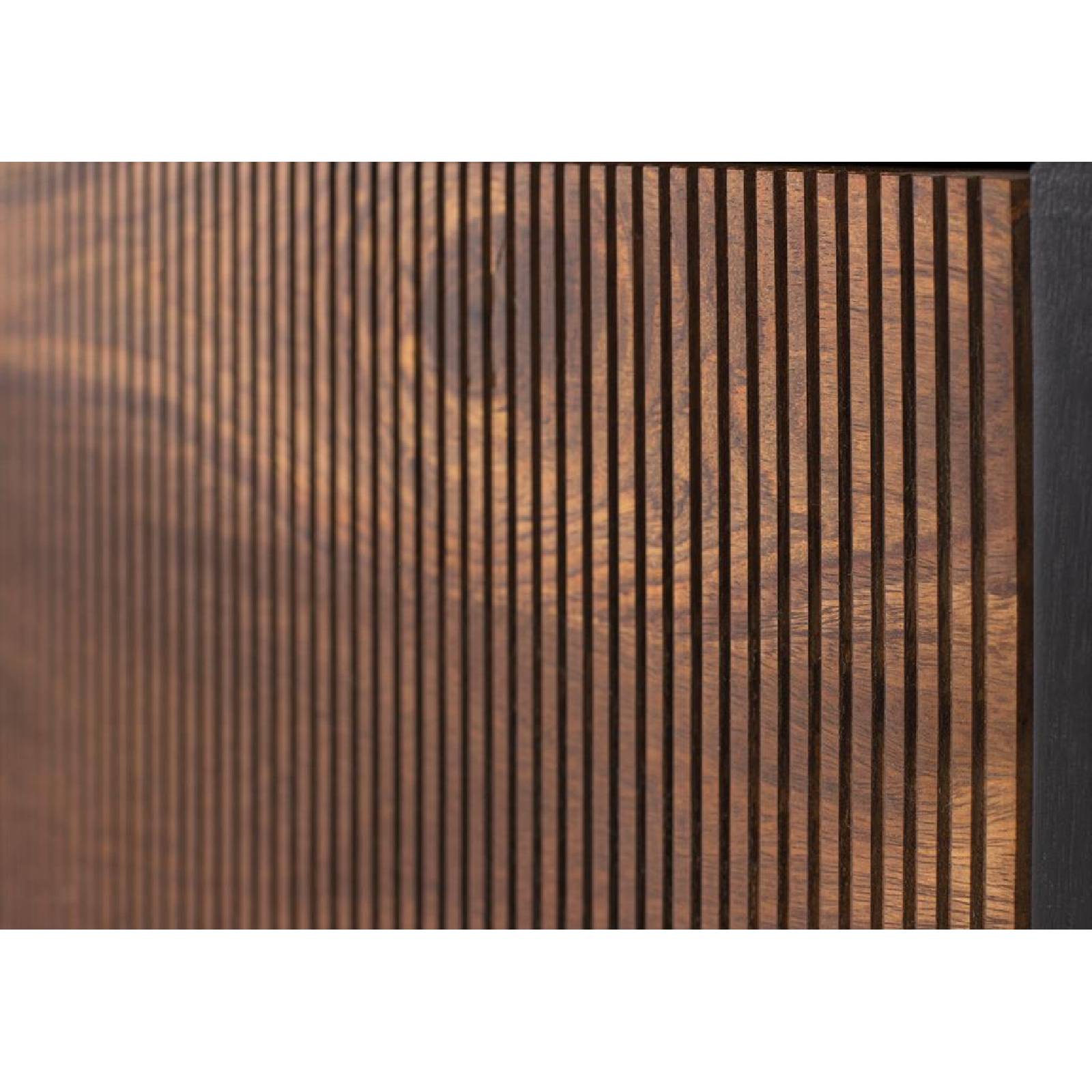 MEUBLE TV AVEC 2 PORTES ET 2 TROUS EN BOIS DE PALISSANDRE ET BOIS DE MANGUIER, PIÉTEMENT EN MÉTAL.