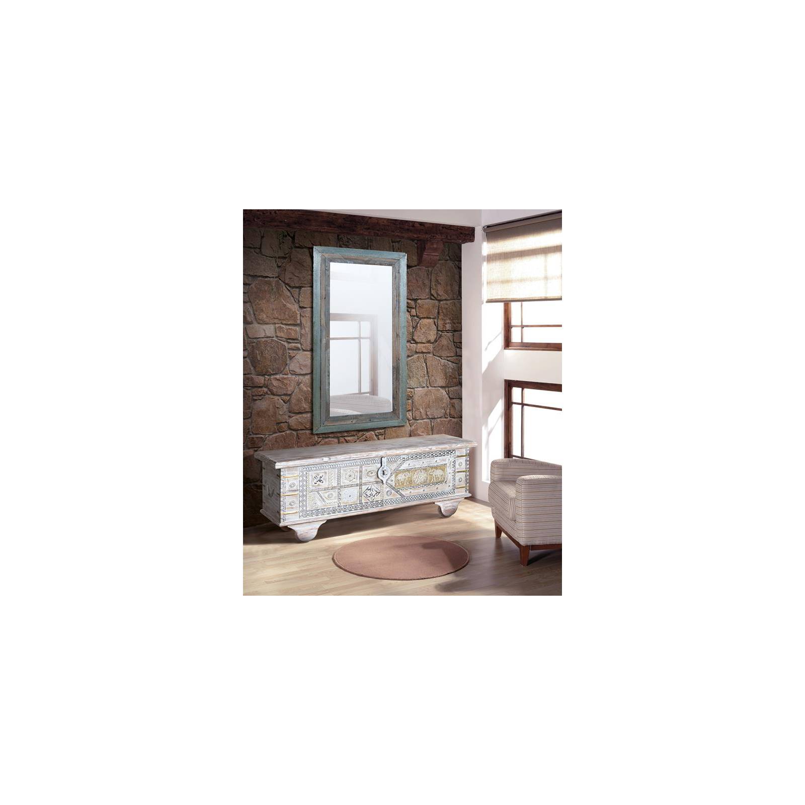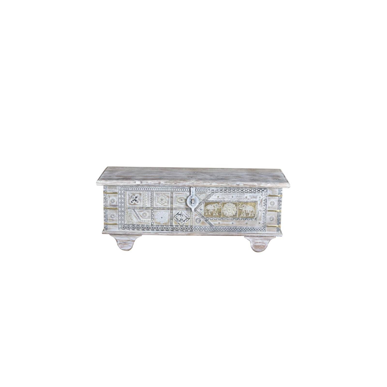 MALLE EN BOIS DE MANGUIER SCULPTÉE À LA MAIN AVEC DETAILS EN BRONCE