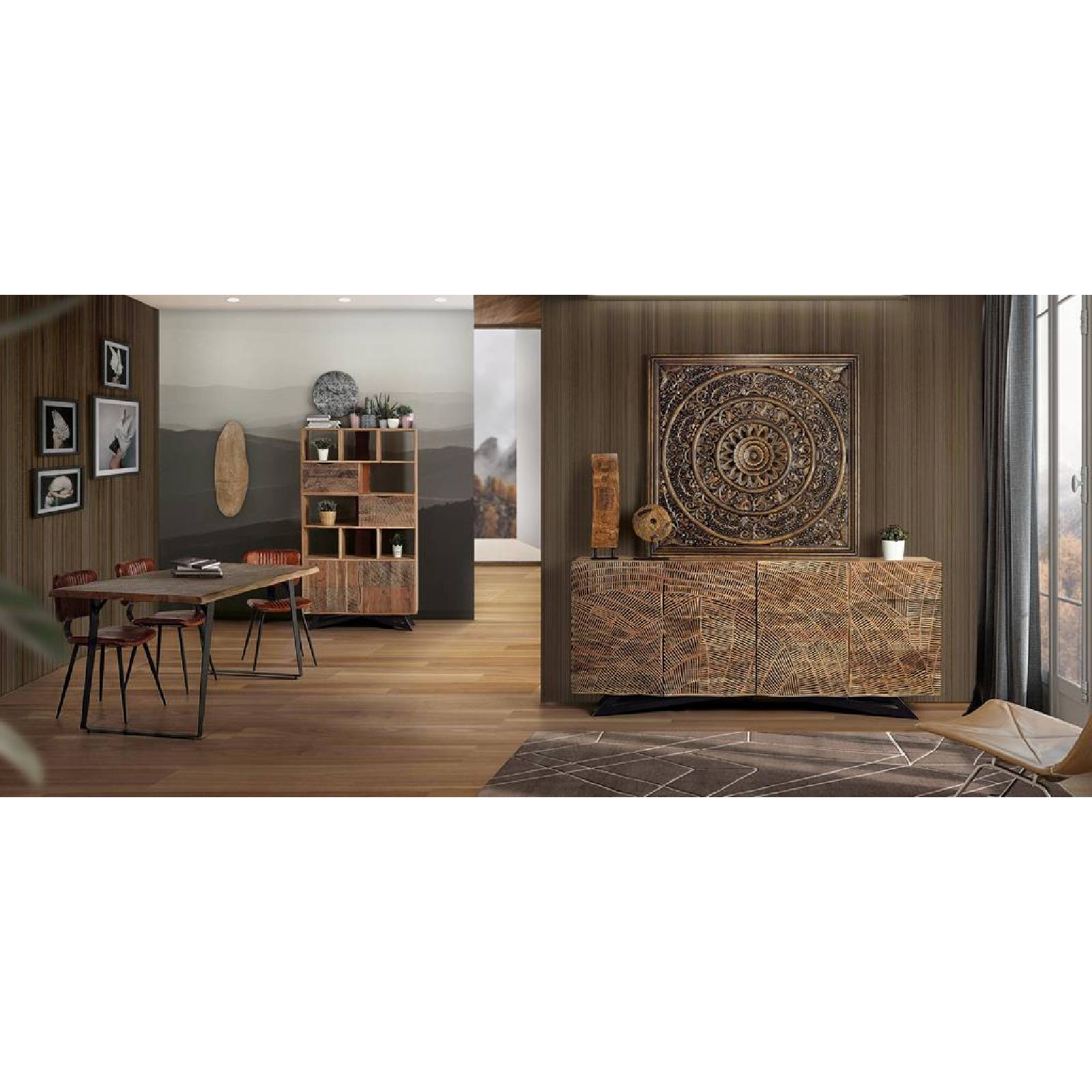 TABLE À MANGER EN BOIS D'ACACIA ET PIEDS EN MÉTAL.