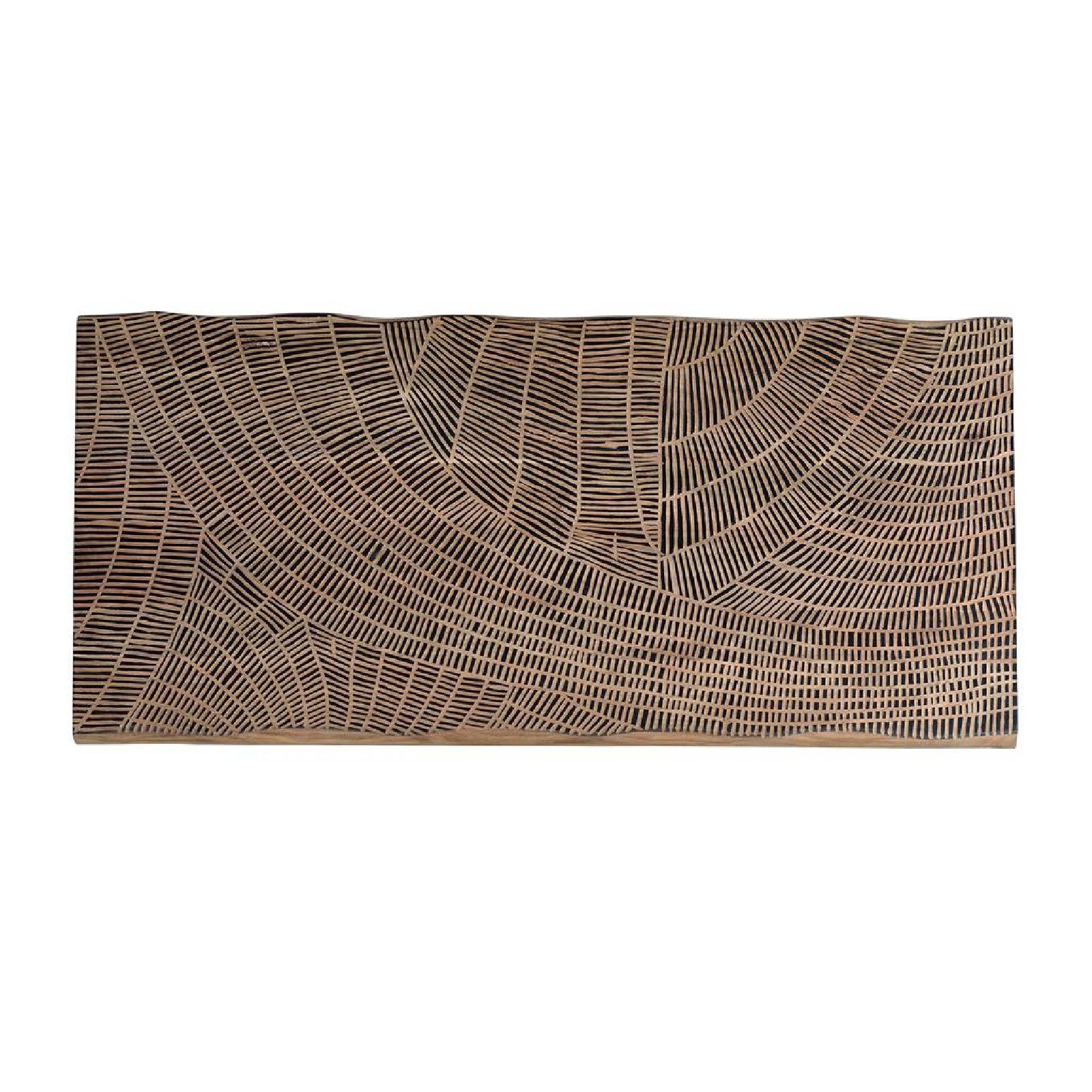 LES BORDS DE LA TABLE SONT IRRÉGULIERS, CE QUI INDIQUE QU'ILS NE SUIVENT PAS UNE LIGNE PARFAITEMENT DROITE ET UNIFORME. CES IRRÉGULARITÉS AJOUTENT UNE TOUCHE DE RUSTICITÉ ET D'AUTHENTICITÉ AU DESIGN DE LA TABLE.