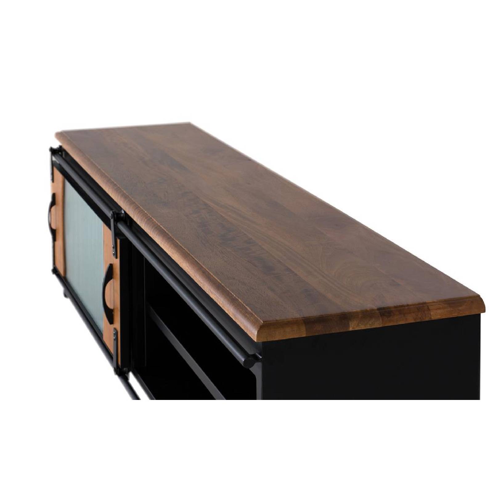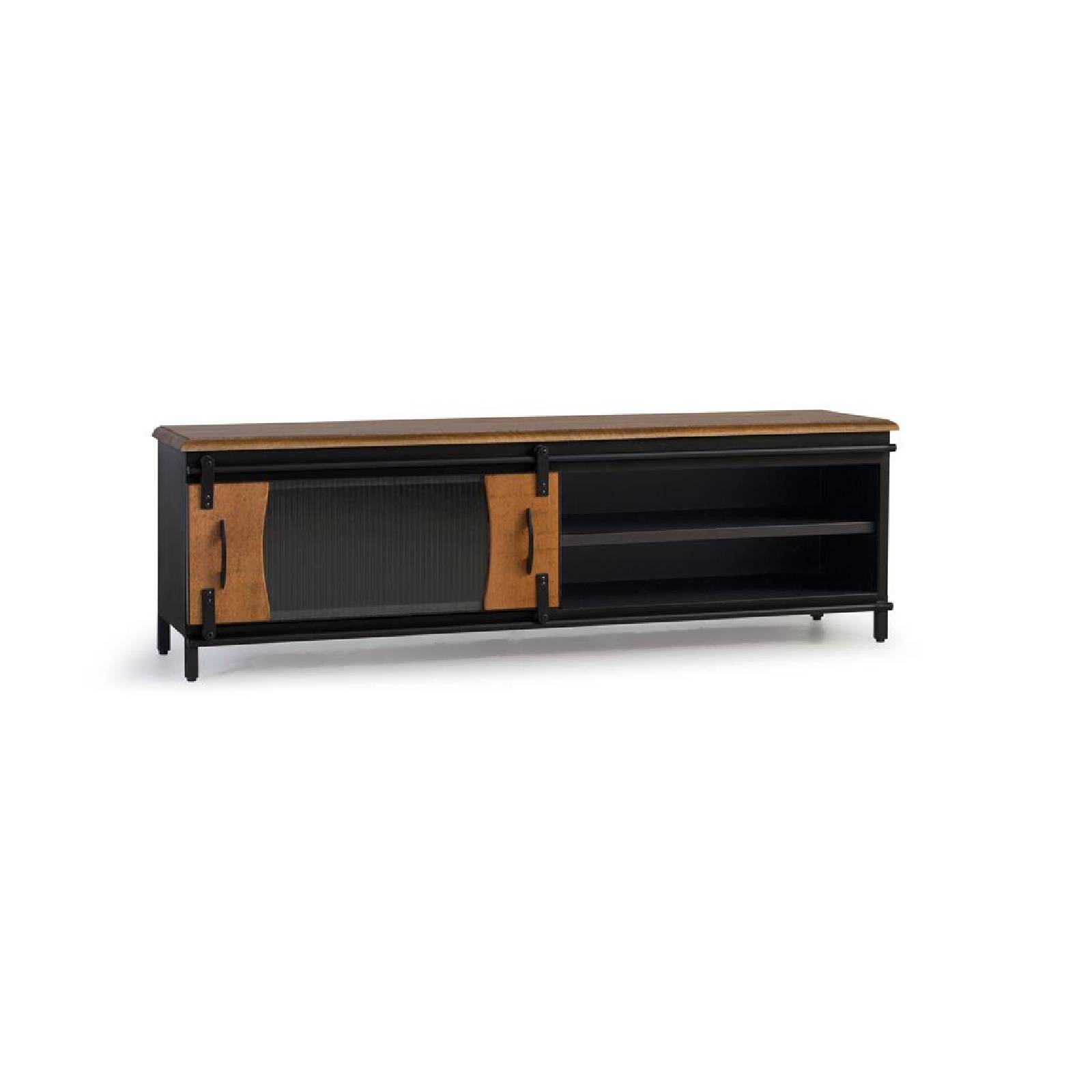 MEUBLE TV DE STYLE INDUSTRIEL AVEC 1 PORTE COULISSANTE ET EN BOIS DE MANGUIER ET MÉTAL.