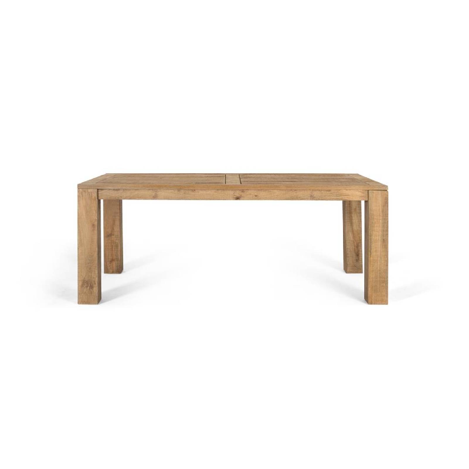 Cette table à manger en bois de manguier et finition naturelle se distingue par sa solidité et son design robuste, alliant fonctionnalité et esthétique avec un style intemporel. Son plateau épais est doté de deux panneaux encadrés, offrant un détail artisanal qui met en valeur la beauté du bois et son veinage naturel. Les pieds, de section carrée et d'épaisseur considérable, confèrent une présence imposante et assurent une stabilité exceptionnelle. Sa structure solide et équilibrée en fait une pièce idéale aussi bien pour les salles à manger que pour les espaces de réunion.