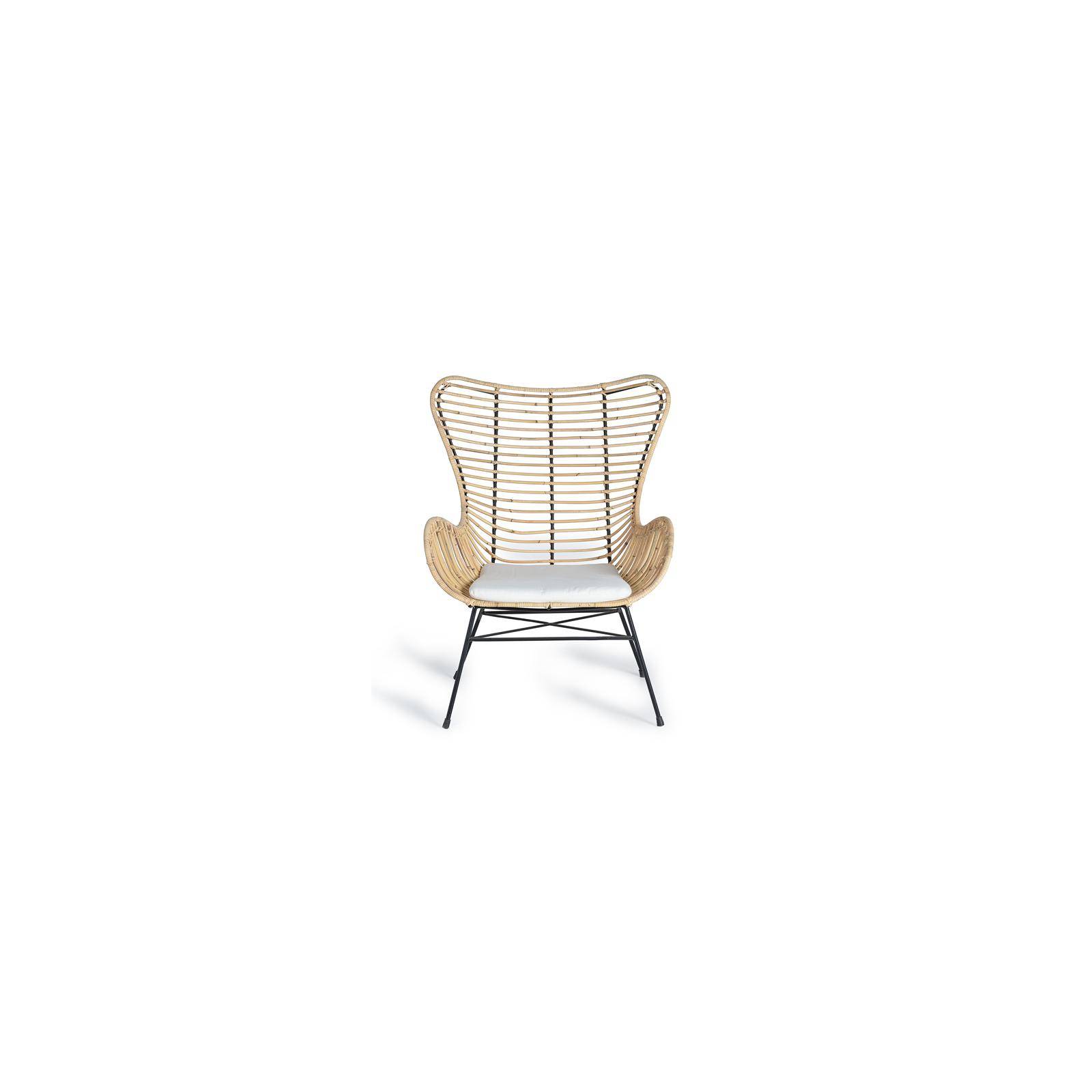 ENSEMBLE DE 2 CHAISES EN ROTIN NATUREL ET MÉTAL, COUSSIN INCLUS.